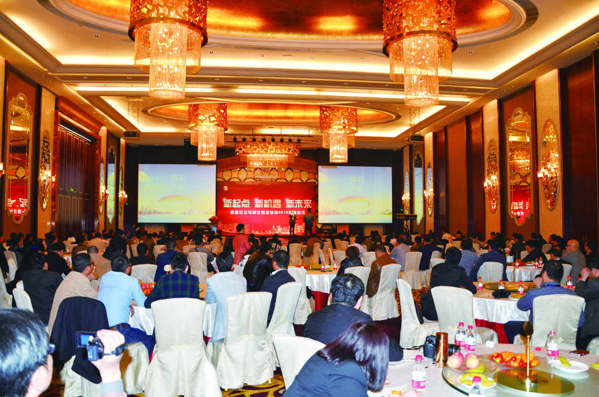 會上,公司副總經理陳衛東首先向遠道而來的各位優秀經銷商表示熱烈地歡迎。他說,2013年我們萬眾一心,團結奮斗,超額完成了年初制定的各項經營目標。我們肩負著彼此的責任,勇于進取,開創出了輝煌的銷售業績。經過十余年的打拼,西繼迅達電梯的整體水平已經邁上一個更高的平臺,同時這也將是我們一個嶄新的起點。展望2014,我們有著更多的機遇和挑戰,企業在組織機構、產品、服務、管理上,進行了更深入優化,給各位經銷商朋友營造更好更高的發展平臺。同時西繼迅達將進一步整合各方資源,集結自身優勢,加大服務力度,全力打造“最安全的電梯”!相信通過大家的不懈努力,2014年又將是我們成功的一年、輝煌的一年!